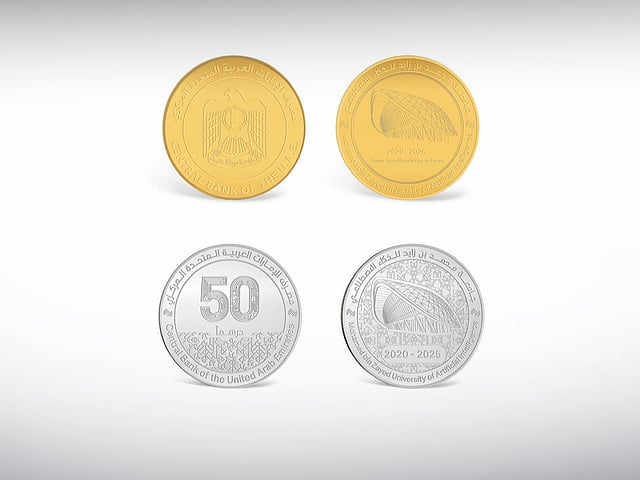 The Central Bank of the UAE (CBUAE) has released special gold and silver coins to celebrate the fifth anniversary of Mohamed bin Zayed University of Artificial Intelligence (MBZUAI).