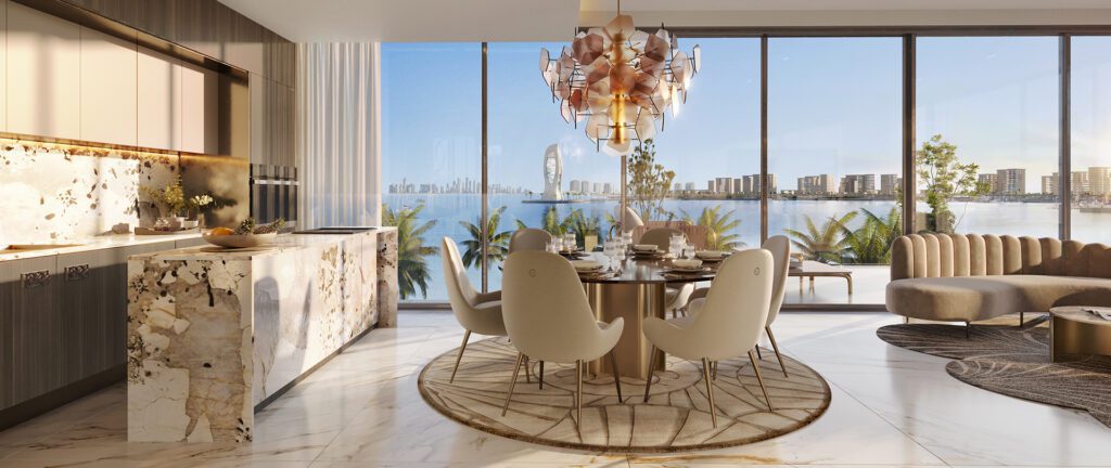 This residential complex on Yas Island offers fully furnished apartments with one to three bedrooms, surrounded by lush lawns and the serene waters of Khor Laffan Bay. The complex provides premium services such as laundry, dry cleaning, personal shopping, and pet-sitting. Apartments feature branded furniture, a “smart home” system, and panoramic windows with stunning views.