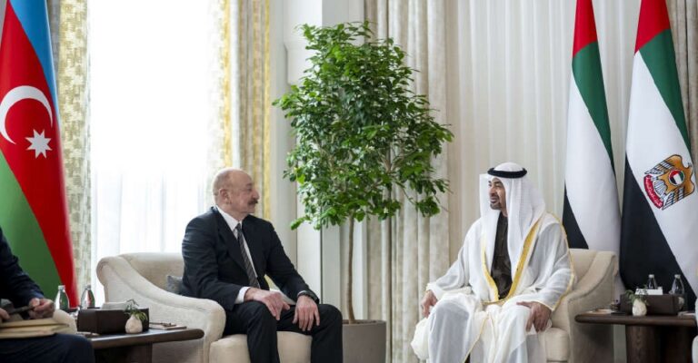 The meeting took place at Qasr Al Shati in Abu Dhabi during Aliyev’s official working visit, under the framework of the Comprehensive Economic and Strategic Partnership between the two nations.